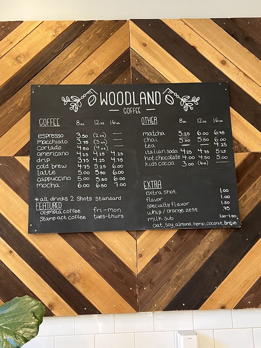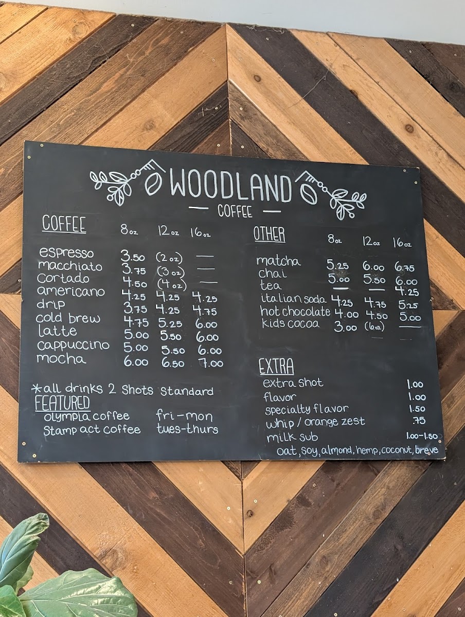 Woodland Coffee Menu
